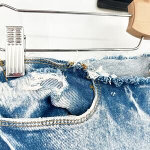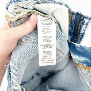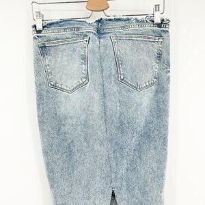Frame Womens Upcycled Stretch Back Slit Pencil Denim Maxi Skirt in Stone Wash Blue. No size tag, please see measurements. Fits about a 30" waist.