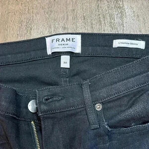 Frame black denim jeans, size 32. Distressed look, plenty of stretch.