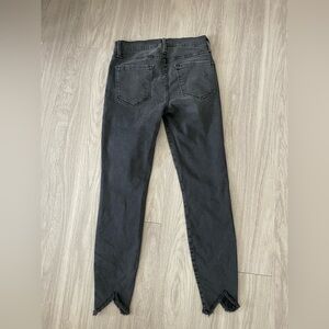 Frame black le skinny de Jeanne crop with frayed asymmetrical distressed cut