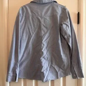 Amazing blue boxy for frame button up. Small defect at back