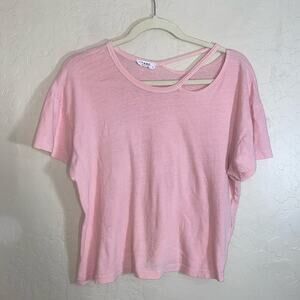 Frame boxy oversized cut out tee. Pink. A bit cropped. Cut out at collar. 100 % cotton. Size XS.