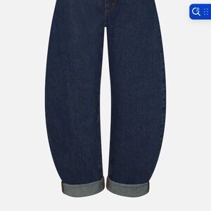 Chic and relaxed bubble jeans. Dark blue hue. Perfect for casual outings.