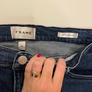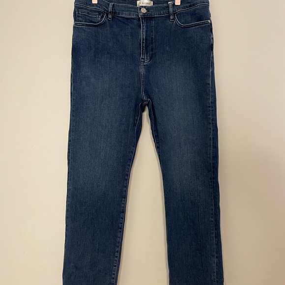 Frame “Le High Straight” style jeans. Machine washable.