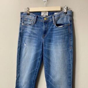 Frame denim Le Gargon jeans size 25. Great condition.Some distressing.Inseam is 28.5” and rise is 8.5”. Laying flat waist is 15.5”