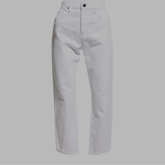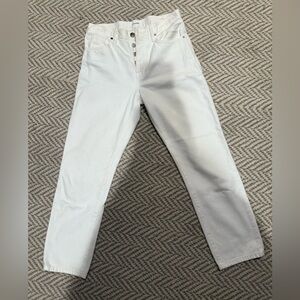 Frame straight leg button fly jeans.