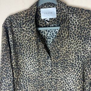 Frame leopard print silk long sleeve blouse M