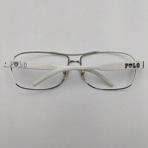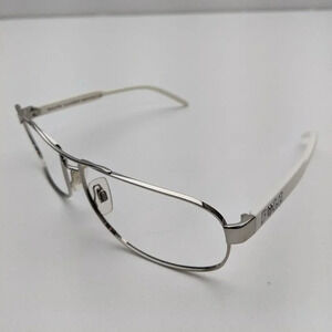 Frame color: Polished silver (rims) and white (temples)