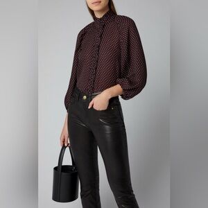 Frame polka dot chiffon blouse with ruffle front. Size S. Excellent condition!