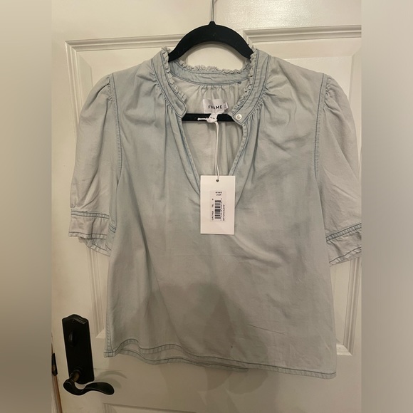 Frame puff sleeve light denim shirt. New with tags. Size medium