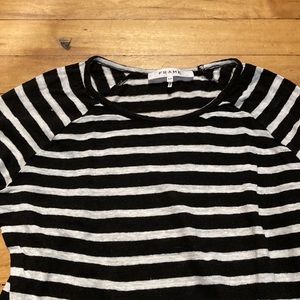 Striped, long-sleeve tee by Frame. 100% linen. Size S/P. Rounded hem. In very good used condition.