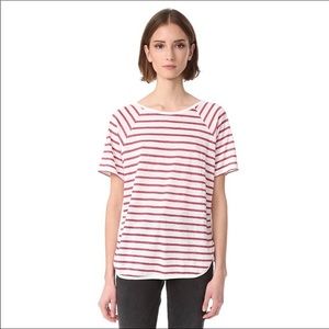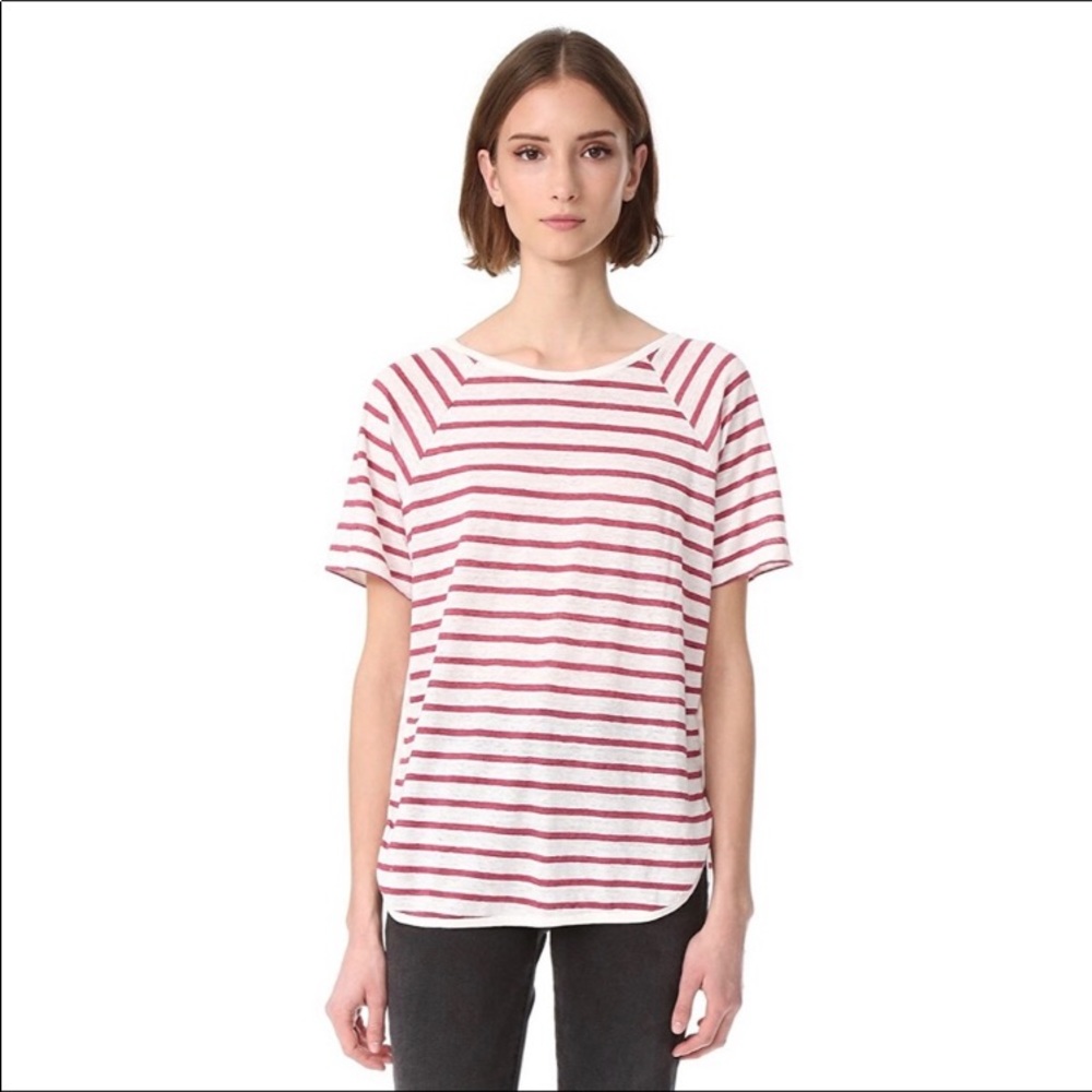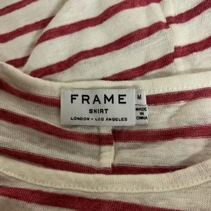 Frame top. Size M. Excellent used condition. Berry color stripe. 100% Linen.
