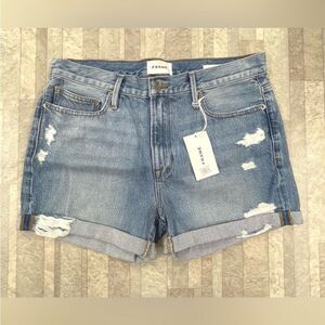 Frame Denim Le Beau Shorts In Elsey Rips.