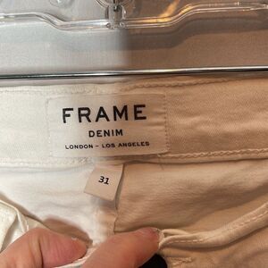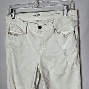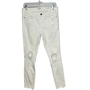 Frame Denim, Le Skinny de Jeanne White Crop. Size 31. Distressed ankle and knee. Excellent condition.