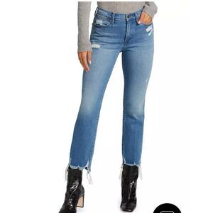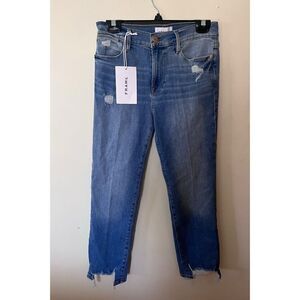 Frame Le High High-Rise Distressed Stretch Straight-Leg Jeans size 27