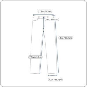 Measurements of length and inseam are taken counting the shredded hem.