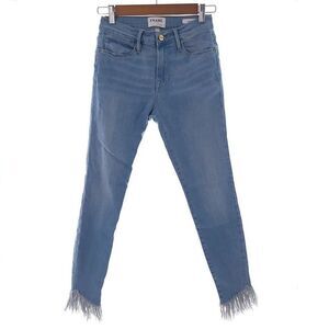 Frame Le High Skinny Shredded Hem Solid Blue Jeans Womens Size 26