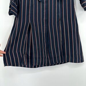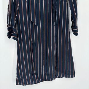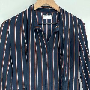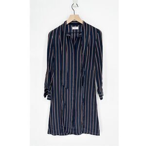 Frame Le Shirt Bow Tie Silk Dress Slit in Navy Vintage Stripe Women's XS