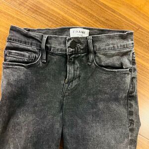 Frame Le Skinny de Jeanne dark wash, charcoal/black. they have stretch and are extremely comfortable. Good condition size 25.