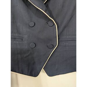 Frame Piped Cropped Blazer women's 6 navy blue double breasted