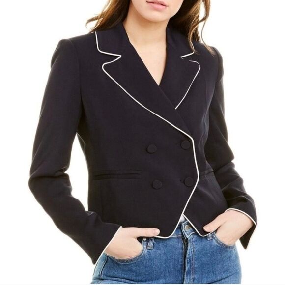 Frame Piped Cropped Blazer women's 6 navy blue double breasted