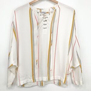 Frame Saffron Summer Stripe White Silk Blend Lace Up Blouse
