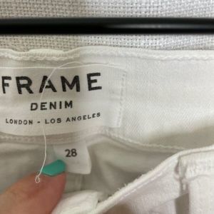 Frame white Le High Skinny jeans in size 28. No flaws. Cotton 91.5%, polyester 6%, spandex 2.5%, machine wash.