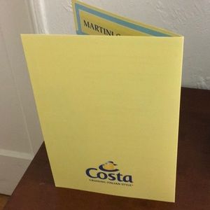 Vintage Art Nouveau style Costa Cruises Martini Cocktail Menu. Can be framed to hang over your Bar oe stand alone on your table top. In new condition.