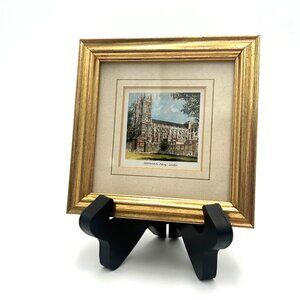 Framed 5" Miniature Westminster Abbey London Print, Gold Frame, MCM, Primitive
