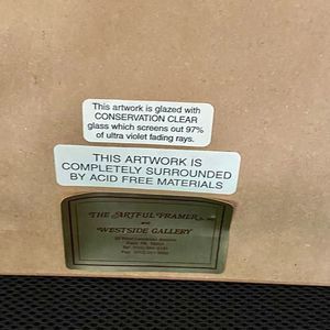 EUC. Frame flaw shown in photo upper left corner. Beautifully framed and double matted. Treated glass to prevent fading.