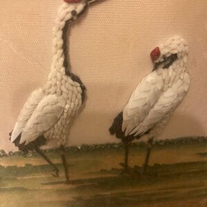 Framed Asian Shell Art Relief 2 Cranes Herons With Tree Vintage 12x18”