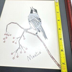 Framed Bird Illustration Signed By Artist Martin Red Bamboo-Style Frame 7.25"