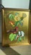 Vibrant botanical art featuring a red bird and yellow flowers in a gold frame.