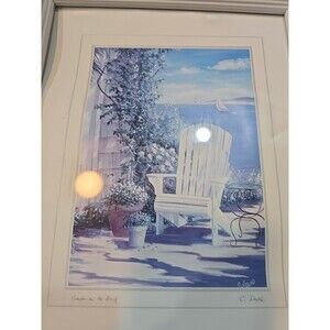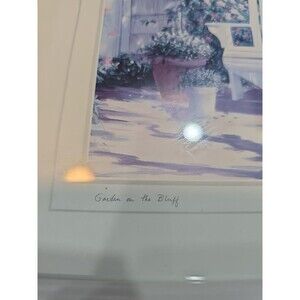 The Framed Carol Saxe, Garden on the Bluff 11" x 10" Signed print depicts a beautiful seasccape with a floral art touch, showcasing the artist's unique American art style. Created in 2002, this original print is framed and measures 11 inches in length and 10 inches in height. The piece, signed by Carol Saxe, adds a touch of elegance to any decor with its captivating seascape subject and delicate floral elements, making it a lovely addition to any art collection.