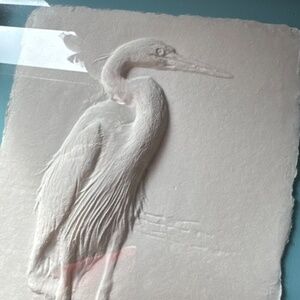 Framed Caste Paper Sculpture Great Blue Heron Signed