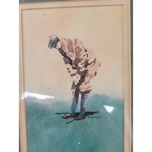 Framed D. Nichols Watercolor Painting/Print, Golfer Putting Matted Framed Decor