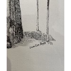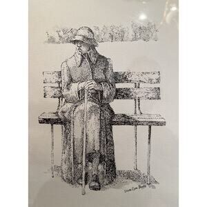 This stunning framed graphite pencil sketch drawing titled "Woman on Park Bench" is a one-of-a-kind masterpiece by artist Diane Cone Booty. The piece is signed by the artist herself and features a beautiful portrayal of a woman sitting on a park bench.