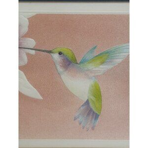 Framed Hummingbird & Flowers Print Artwork Embossed paper In Gold Wooden Frame 1