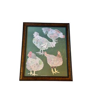 Framed Jill Bliss Chicken Artwork Framed 23" X 19" Country Farmhouse Boho Chic