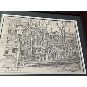 Framed Louisburg Square Boston Signed Drawing Print Art Ruzicka Style Historic