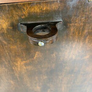 Beautiful condition. Frame had poles for table top easel so there are two things that stick out on back. The full back could be unscrewed and taken out if wall decor is what you desire. Frame measurements: Height: 21", Width: 17", Depth (without the two things on the back): 0.75".