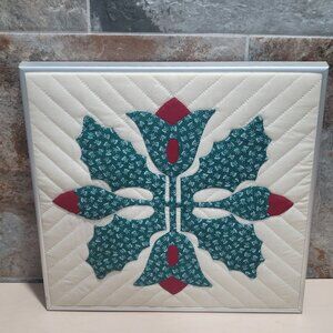 Framed Oak Leaf and Reel Princess Feather Appliqué Pattern Quilt Hanging Wall Art Decor