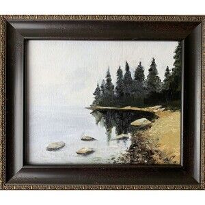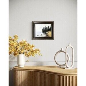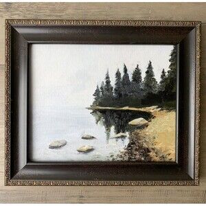 Framed Original Oil Landscape Painting Maine Atmospheric Seascape Signed 11x13"