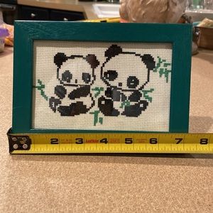 2 cute pandas cross stitched and framed in an easel back frame. Measurements in pictures.