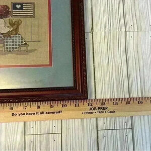 Framed Patriotic Teddy Bear Cross Stitch Embroidered Handmade