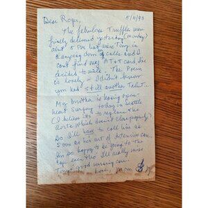A touching slice of personal history — this vintage framed black-and-white portrait features a poised woman playing the violin, captured in a moment of quiet focus. Accompanying the photo is a handwritten letter dated 1993 from “Mom” to her son, Roger. The note references music, family health, and everyday life — making this a truly unique piece for lovers of music, nostalgia, or found ephemera.