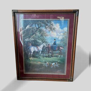 Framed Print Fox Hunters Vtg Art Equestrian Judith Gibson Brass Accents 39x32