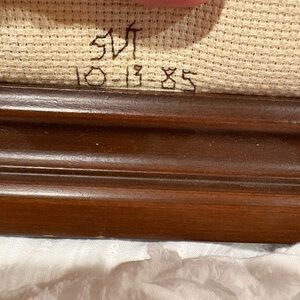 Beautiful embroidery art featuring seashells. Set in a dark brown frame. Hand stitched "Footprints in the Sand" Perfect for coastal decor. Domes not have glass or plastic over the print Hanging supplies attached. The frame has some marks see pictures please. This was stitched in 1985. Thanks for looking!