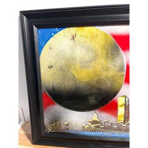 Framed Spray Paint Artwork Of Twin Towers & American Flag