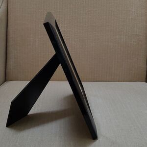 Framed Square Needlework Circus Lion. Cute lion sitting atop a round striped platform with a flower on its tail. Handmade and framed in a black frame.