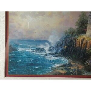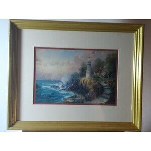 This beautiful Thomas Kinkade piece titled "The Light of Peace" is a 14x10 canvas board with a glossy finish. The multi-color print depicts a peaceful scene in nature and is signed and personalized by the artist. The Light of Peace is perfect for those who appreciate realism and nature themes; is an original from 1998 and comes framed and matted, ready to be displayed.